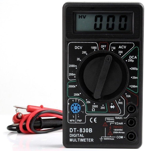 - เปิดมัลติมิเตอร์ สามารถใช้เครื่องทดสอบแบตเตอรี่ CR2032 รุ่น DT 830 B หรือรุ่นที่คล้ายกันได้